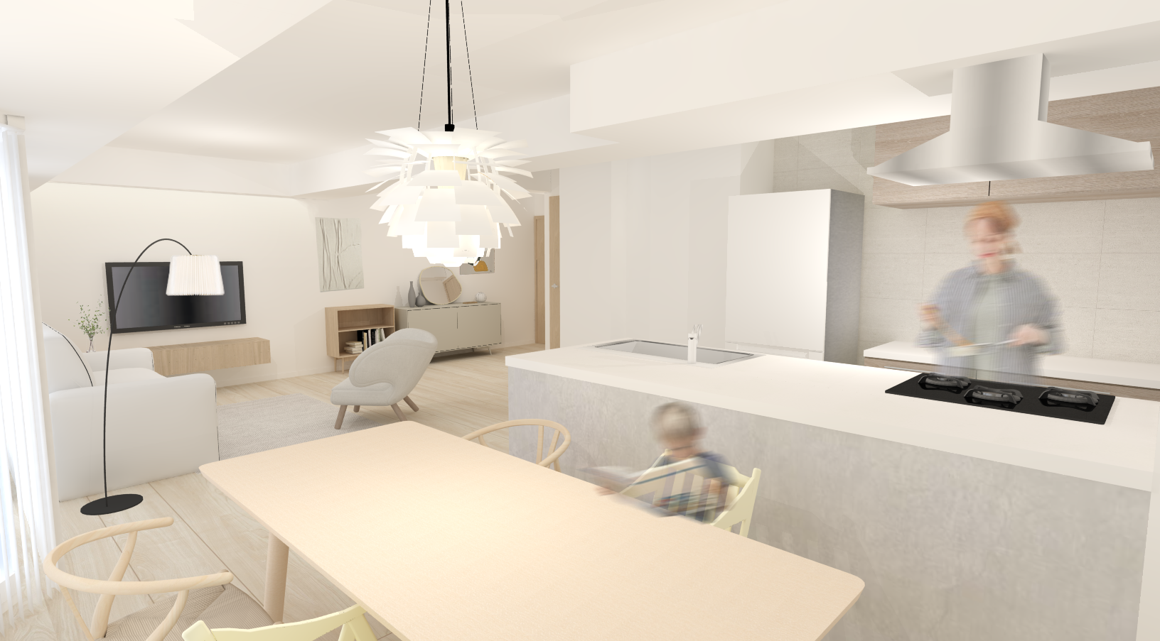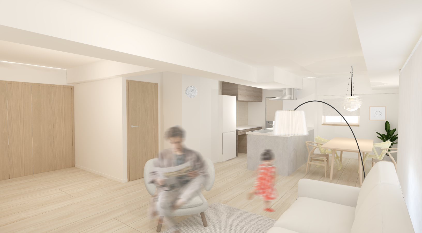 マイホームをリフォーム予定のお客様。ペリカンチェアやルイスポールセンなど置きたいデザイナーズ家具は決まっているもののそれに合わせた家具の選定、レイアウトやクロス選びに悩んでいるとのご相談を受けました。床材とアクセントクロスは種類、配置ともに何パターンかご提案し、今回はアクセントクロスなしとなりました。モダンインテリアを取り入れつつ、木や淡いカラーで全体をまとめ、木の温かみを感じるお部屋になるよう、家具を選定。かわいくなりすぎないような要素をプラスし、家族でゆったりとくつろげるシンプルな大人北欧モダンなお部屋に仕上げました。