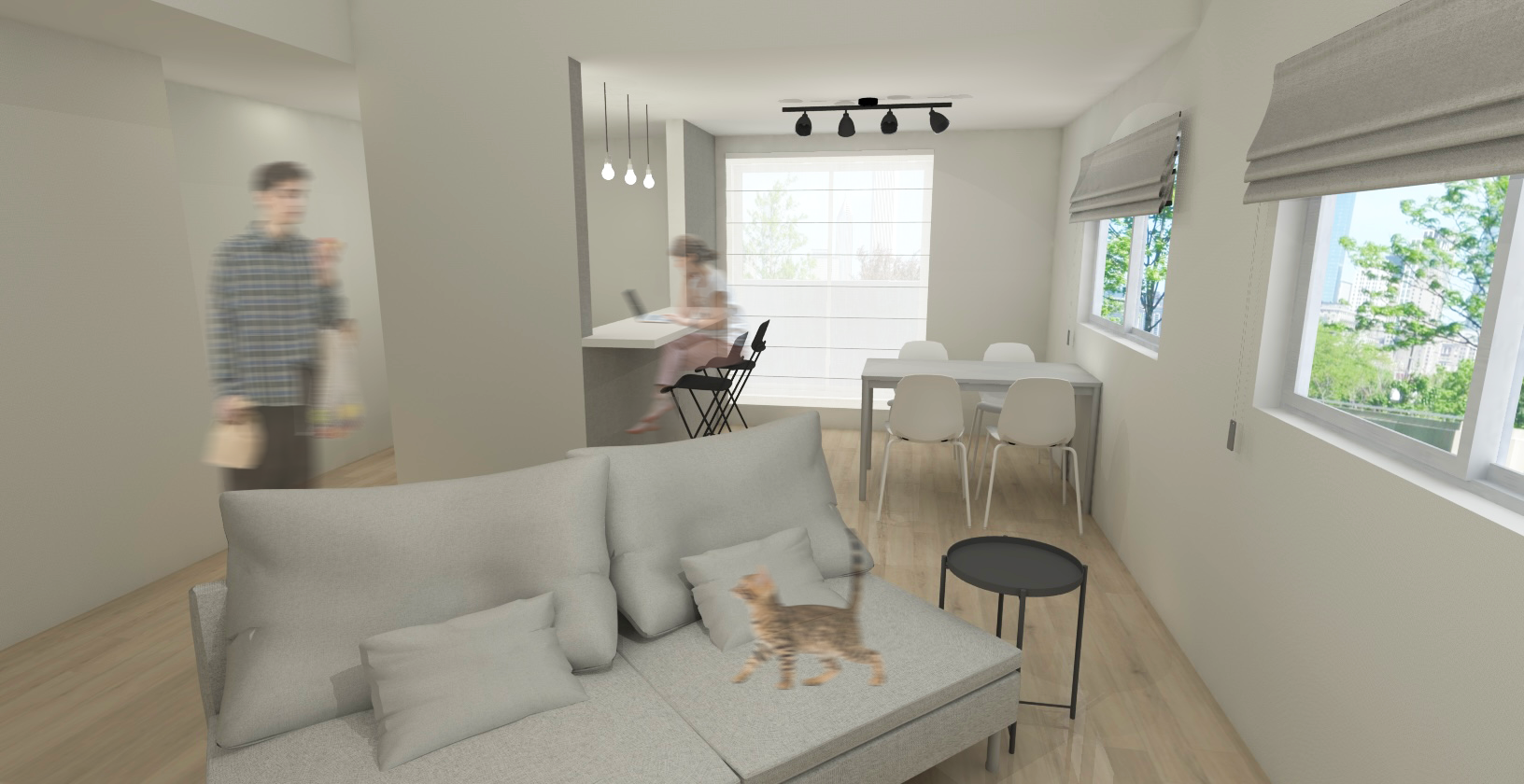 戸建住宅を購入し、引っ越しをするにあたりせっかくなら素敵なLDKにしたいけど、どんな家具を購入したらいいか分からない!とご相談をいただきました。なるべく予算を抑えたい、実際に見てから購入したいので近くに店舗があるショップがいいとのことでしたので、安くておしゃれな家具が揃っているIKEAをメインにトータルコーディネート。モノトーンインテリアがお好みとのことでしたので、ホワイトやグレーをメインカラー、ブラックをアクセントカラーでまとめています。観葉植物を置いてグリーンをプラスするのも素敵ですね。